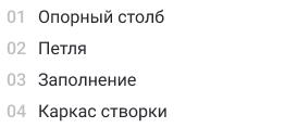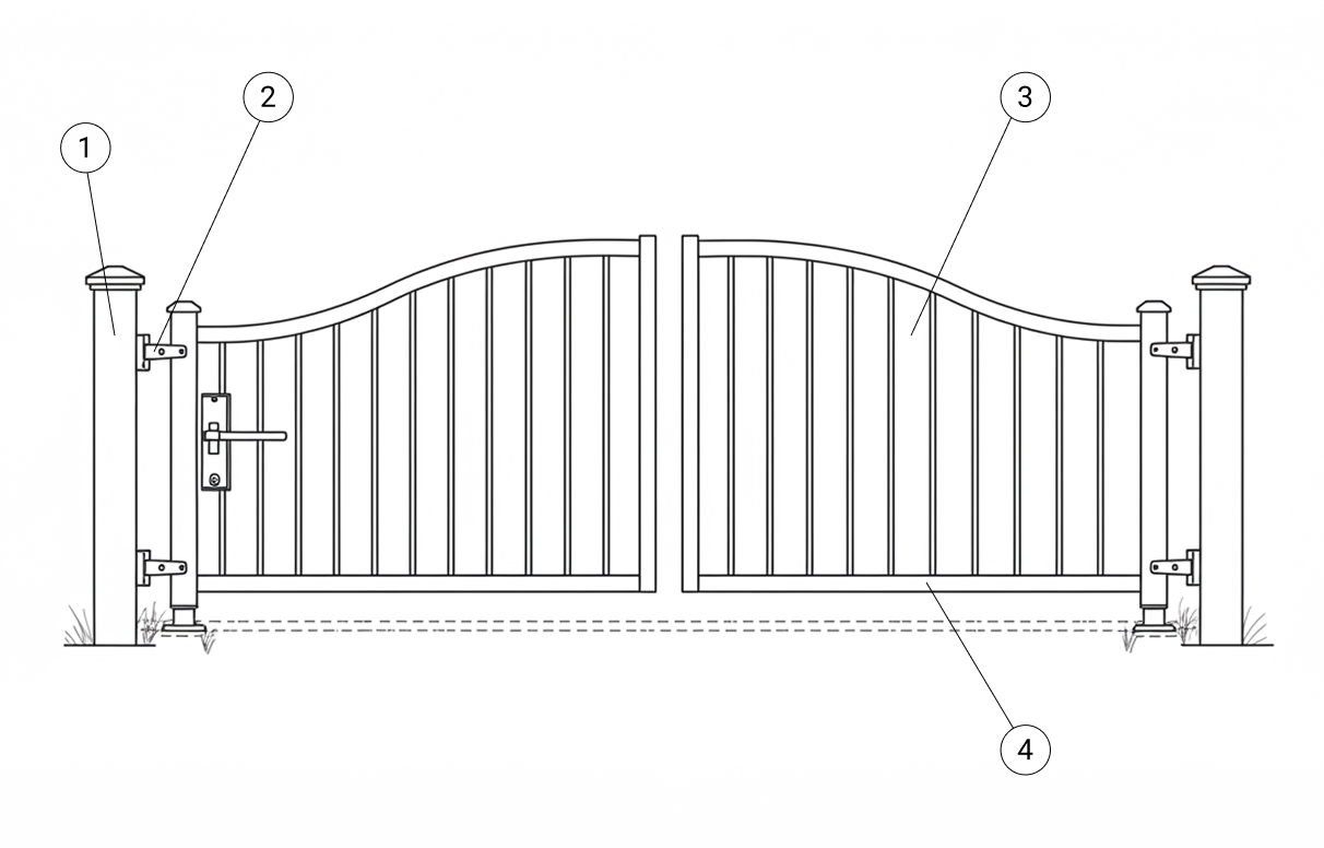 Изделия создают из каркаса, столбов, и наполняют створки заказанным заказчиком материалом. Каркас изготовлен из трубы прямоугольной или квадратной. Для столбов подходит профиль 100х100 мм или 80х80 мм.